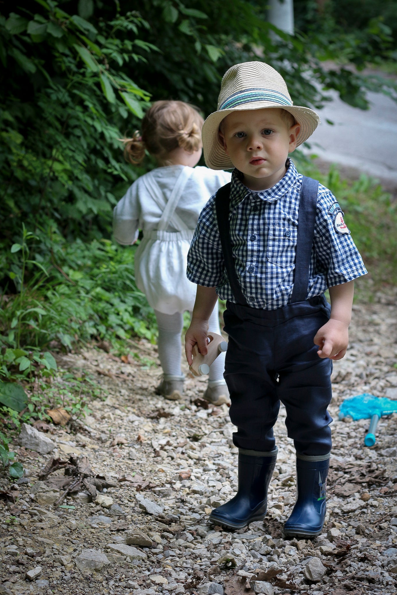 Tako se i ove multifunkcionalne hlačice mogu nositi u svečanim prilikama poput vjenčanja, ali su odlične i kao hlačice za svakodnevne ležerne šetnje. Tregeri su pričvršćeni na hlačice s drvenim gumbićima i mogu se skidati, hlače imaju gumenu pasicu te dva mala prednja džepa koja upotpunjuju elegantan izgled i omogućuju spremanje malih kamenčića :)